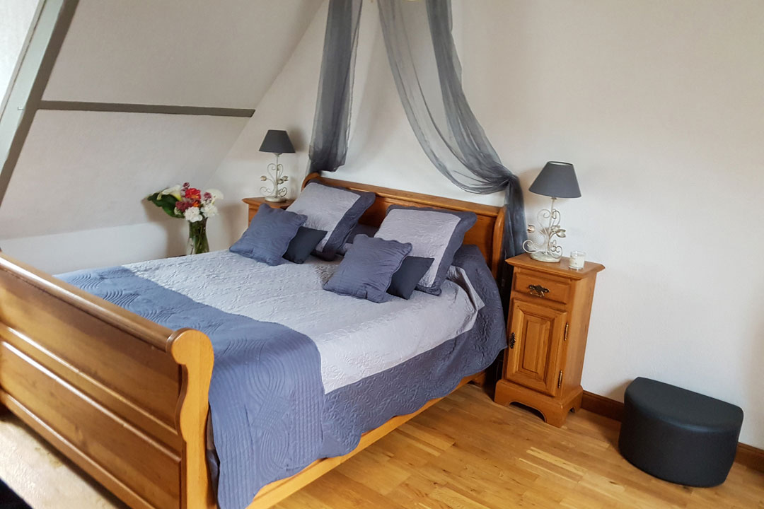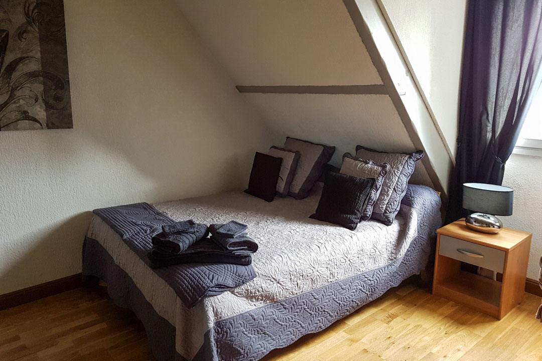 Votre chambre est au 1er étage qui vous est réservé entièrement. Vous disposez d'une salle de douche et de toilettes privées.